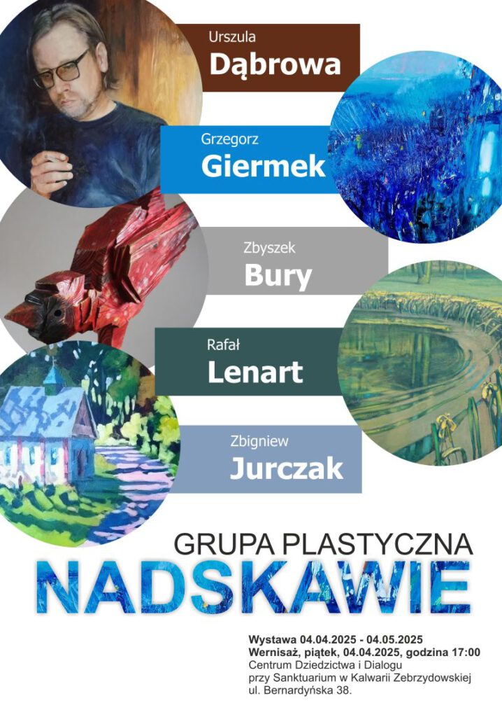 Serdecznie zapraszamy na wernisaż wystawy malarstwa Grupy Plastycznej Nadskawie. Odbędzie się w piątek 4 kwietnia o godz. 17.00 w salach naszego centrum przy ul. Bernardyńskiej 38 (obok kaplicy św. Rafała).